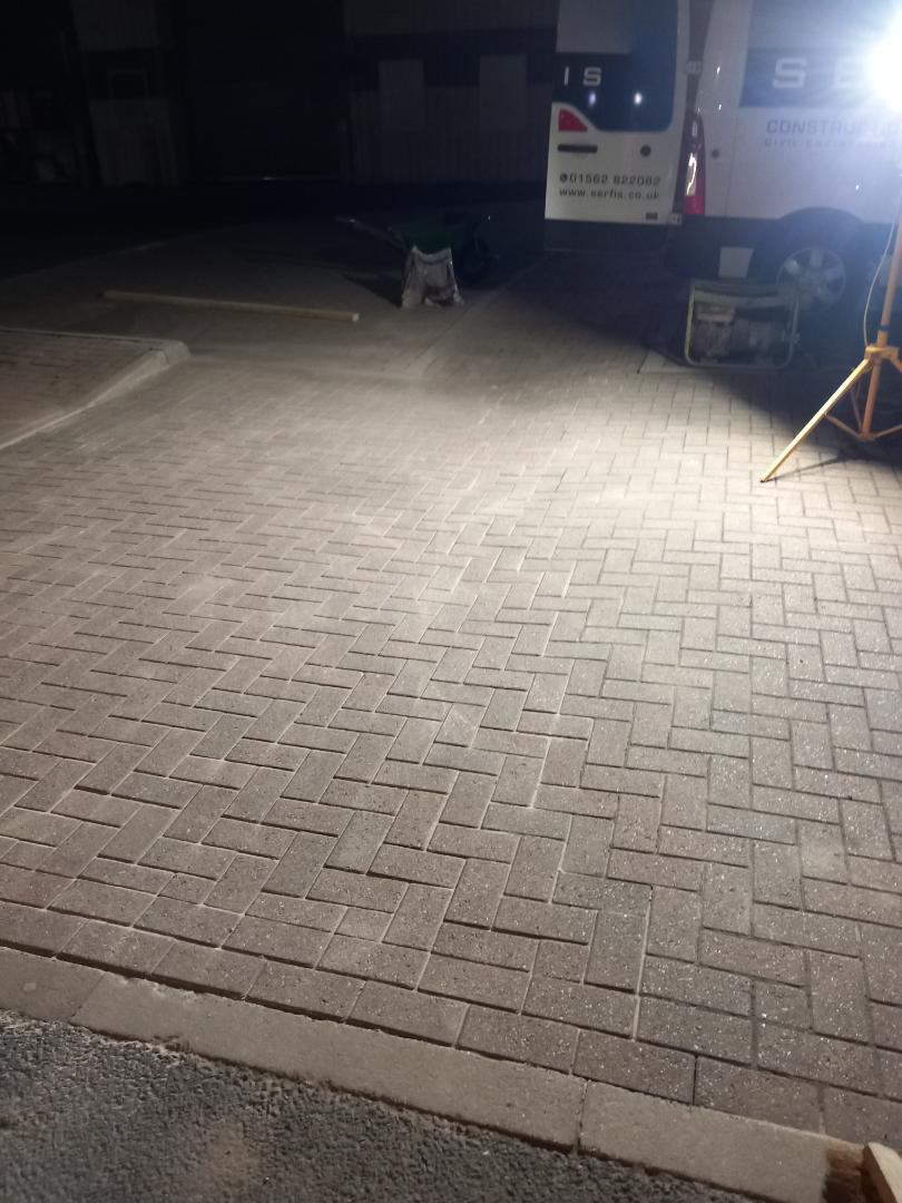 Ionic Park – Surface Defect: SCEL were given the project to repair defects in the surface of the tarmac and block pavers, the areas had sunk and were holding water. We undertook both repairs in a single night shift to minimise disruption to the business park. The desired result was achieved.