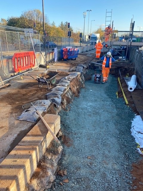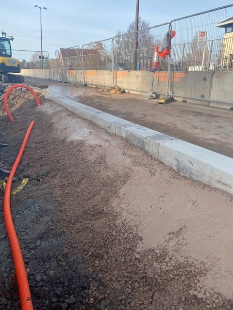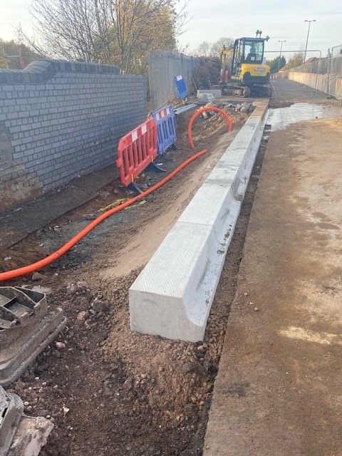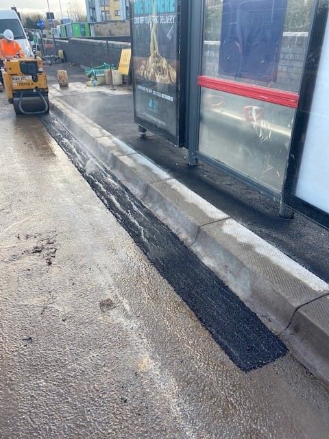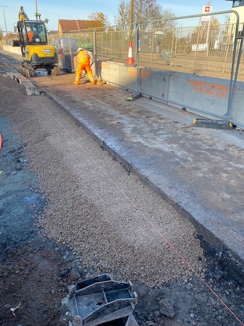 Serfis Construction and Engineering were appointed contractor install the required kassle kerbing for the bus stop and renew the footpath following the structural work completed by Network Rail on the adjacent bridge structure.